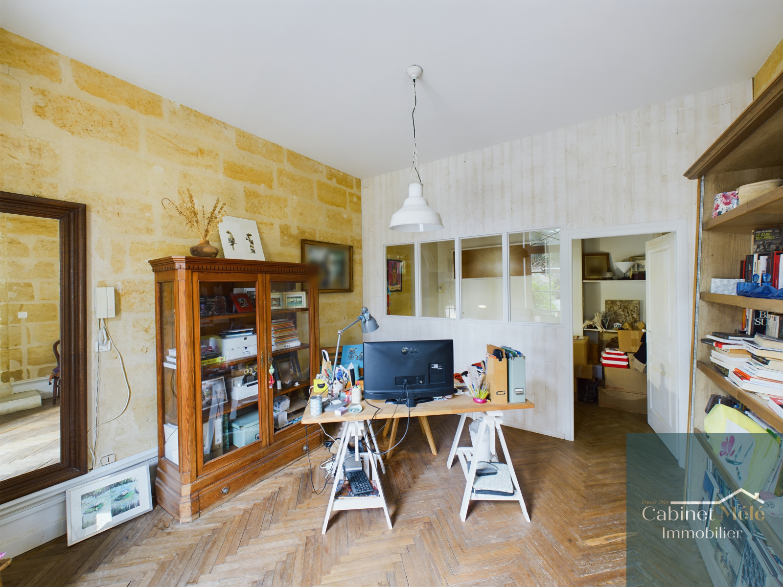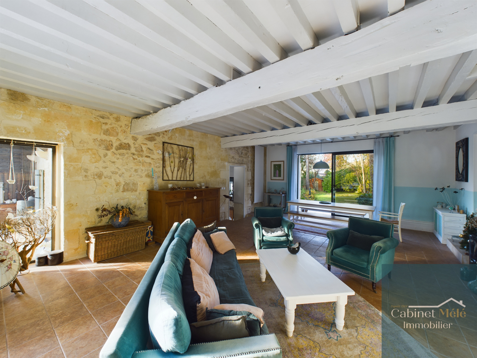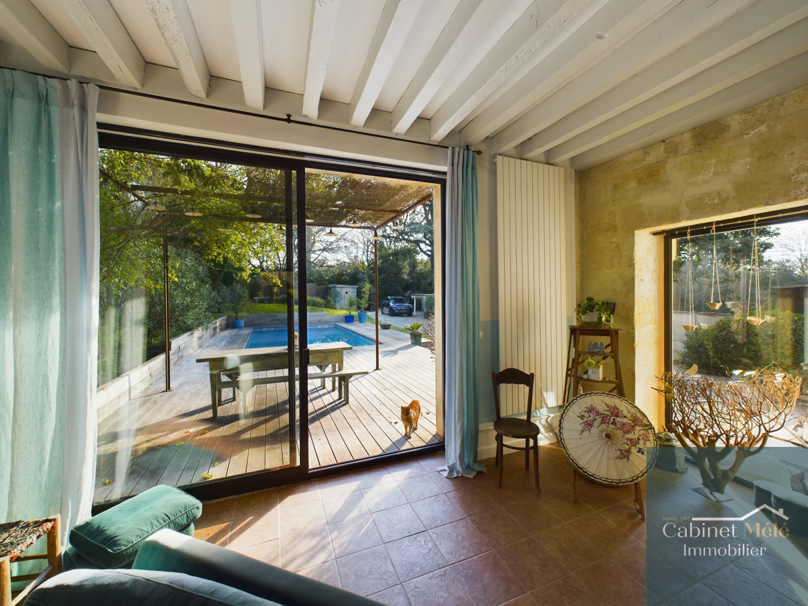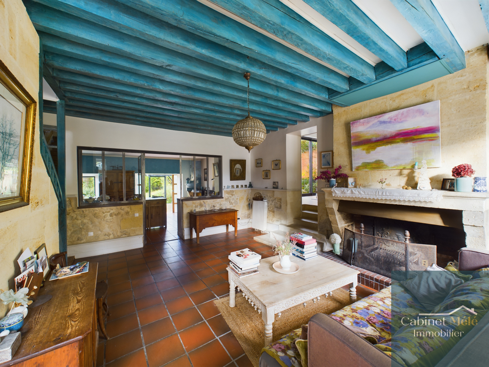 Bouliac (33270)-VENDUE PAR NOS SOINS -Aux portes de Bordeaux, idéalement située à Bouliac, le Cabinet Mélé vous présente en exclusivité cette propriété de charme en pierre d'environ 250m² hab comprenant une pièce de réception de 28m² donnant sur une cuisine spacieuse de 20m2 avec sa véranda, un séjour lumineux de 53m² avec une cheminée ouverte. Un bureau avec accès à la terrasse, une buanderie et un wc complètent le rez-de-chaussée.