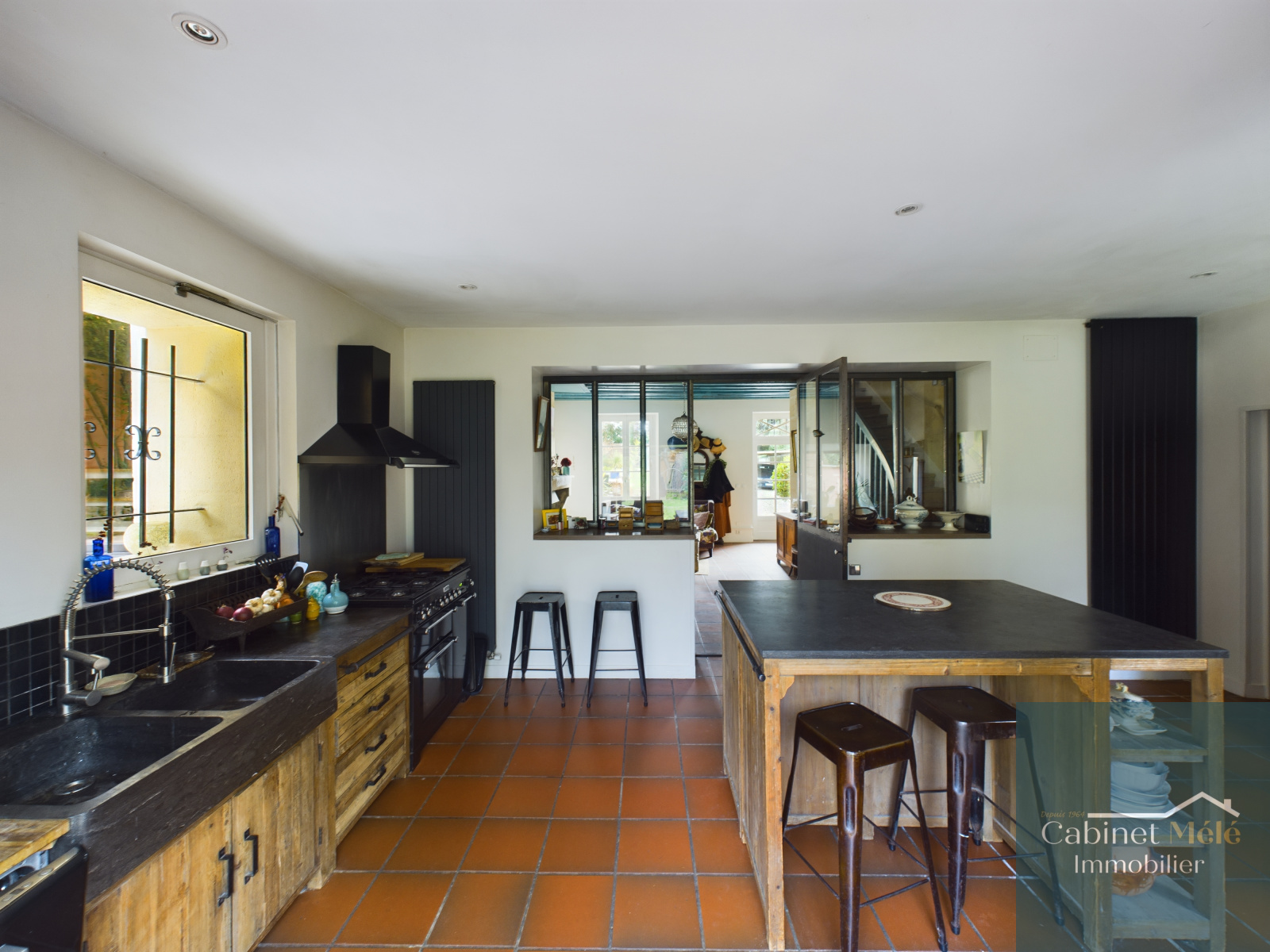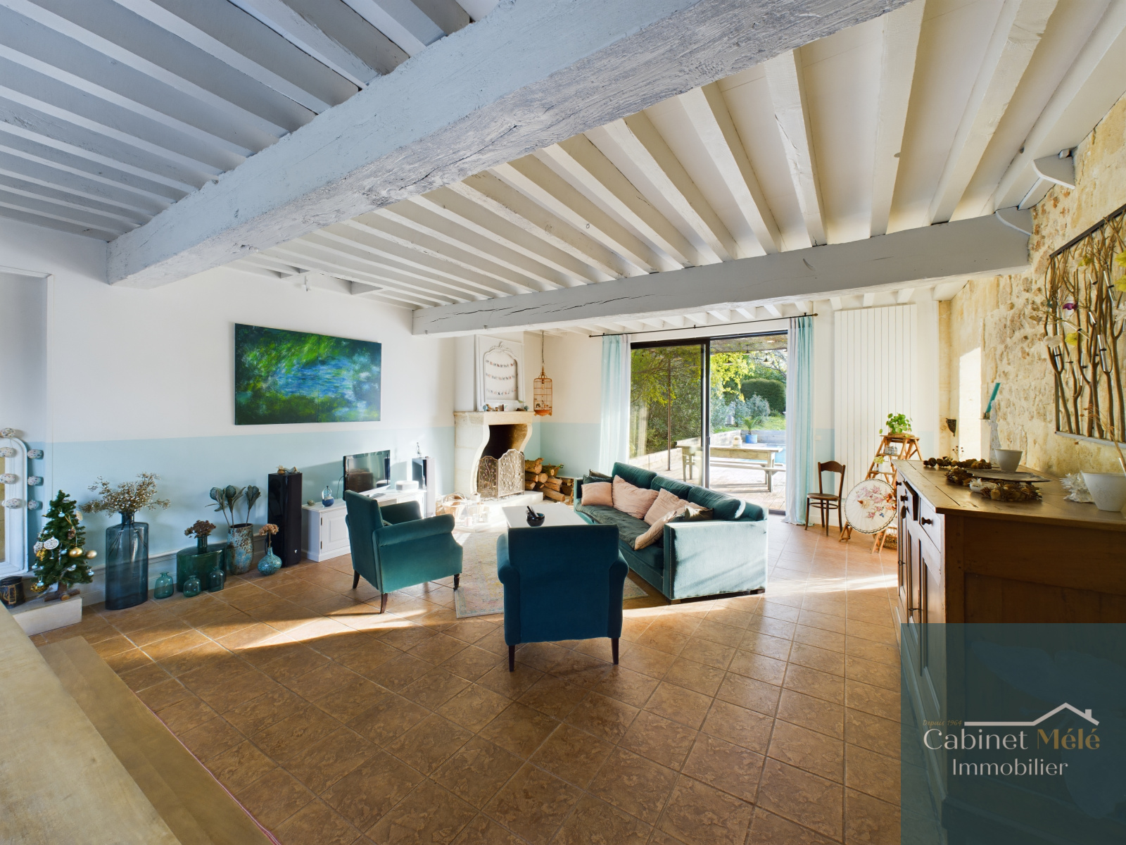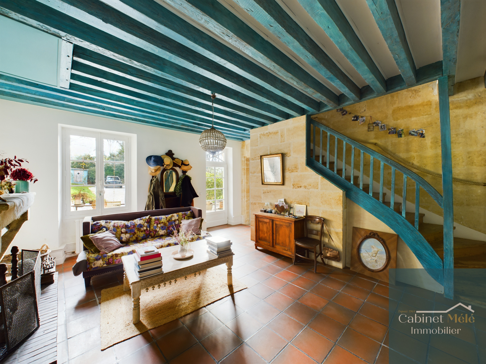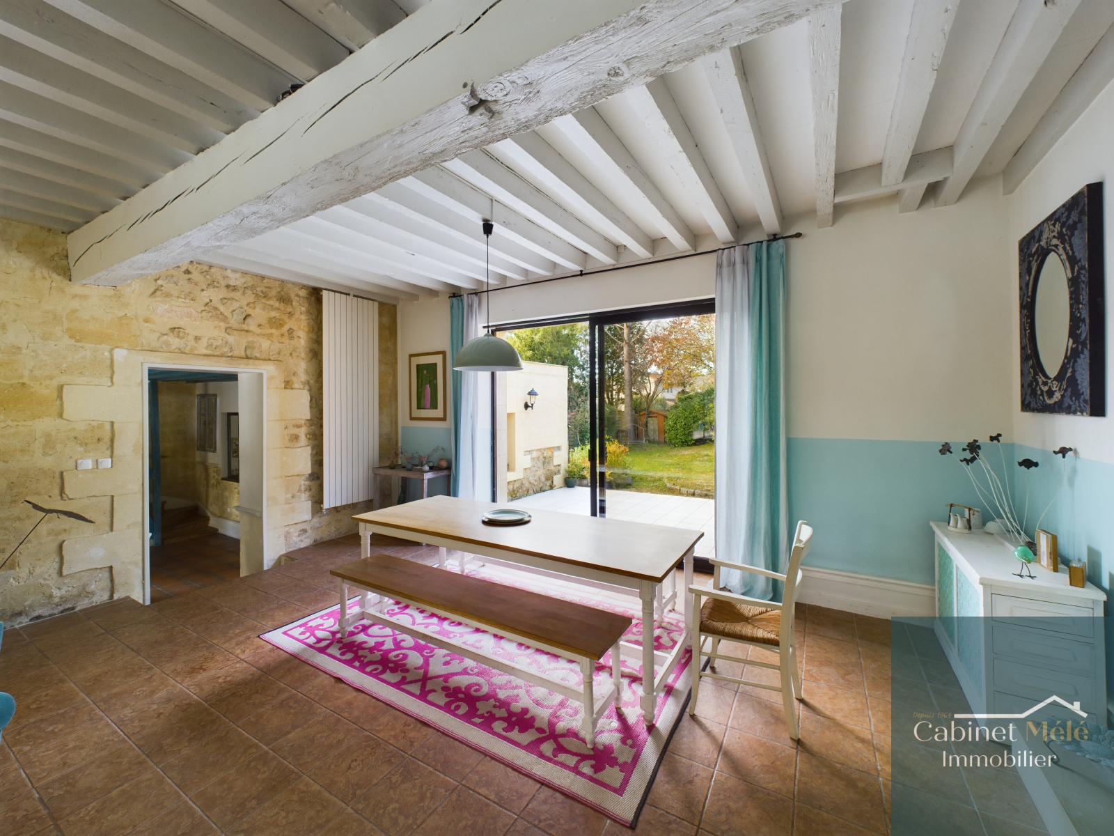 Bouliac (33270)-VENDUE PAR NOS SOINS -Aux portes de Bordeaux, idéalement située à Bouliac, le Cabinet Mélé vous présente en exclusivité cette propriété de charme en pierre d'environ 250m² hab comprenant une pièce de réception de 28m² donnant sur une cuisine spacieuse de 20m2 avec sa véranda, un séjour lumineux de 53m² avec une cheminée ouverte. Un bureau avec accès à la terrasse, une buanderie et un wc complètent le rez-de-chaussée.