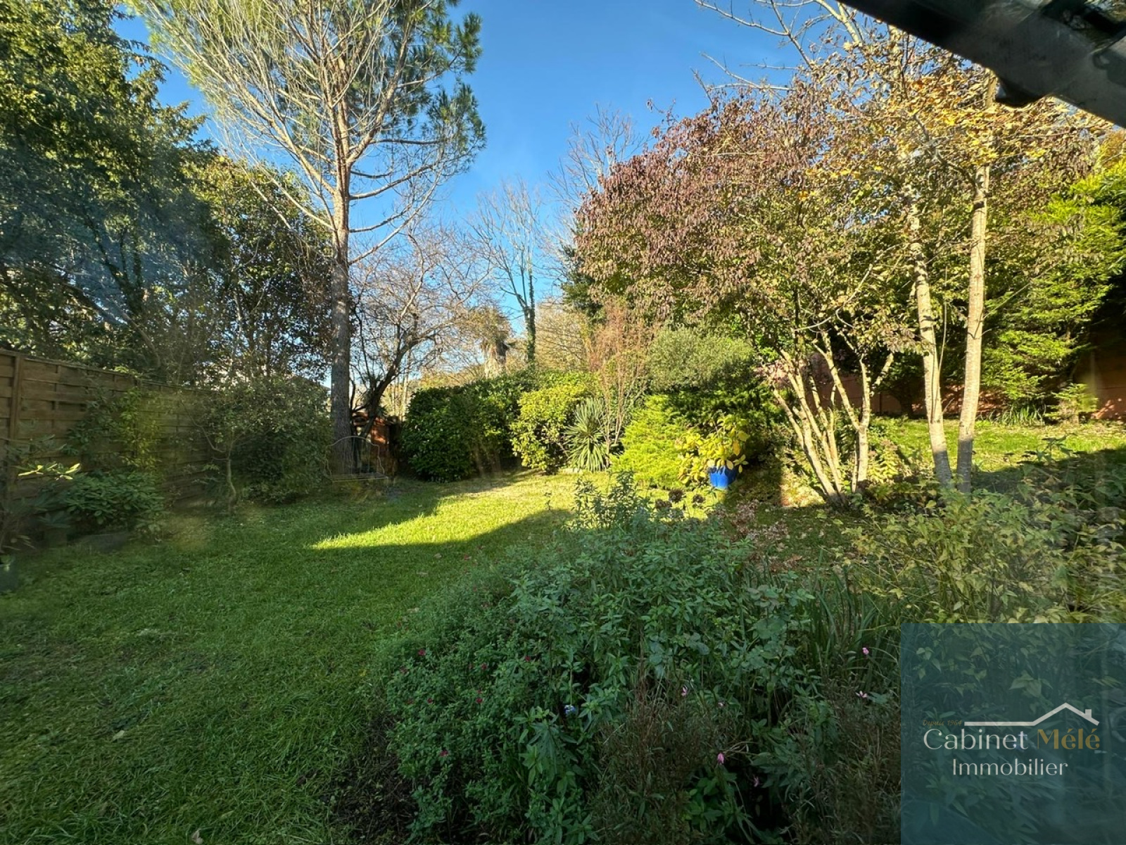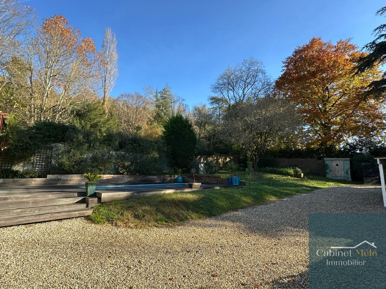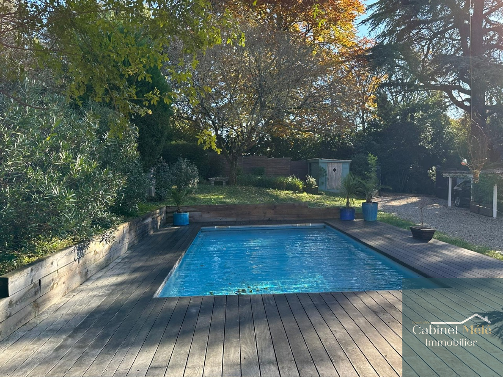 Le jardin de 1321m² arboré vous offre une piscine au sel 8x4 chauffée. Visite virtuelle immersive sur demande.
