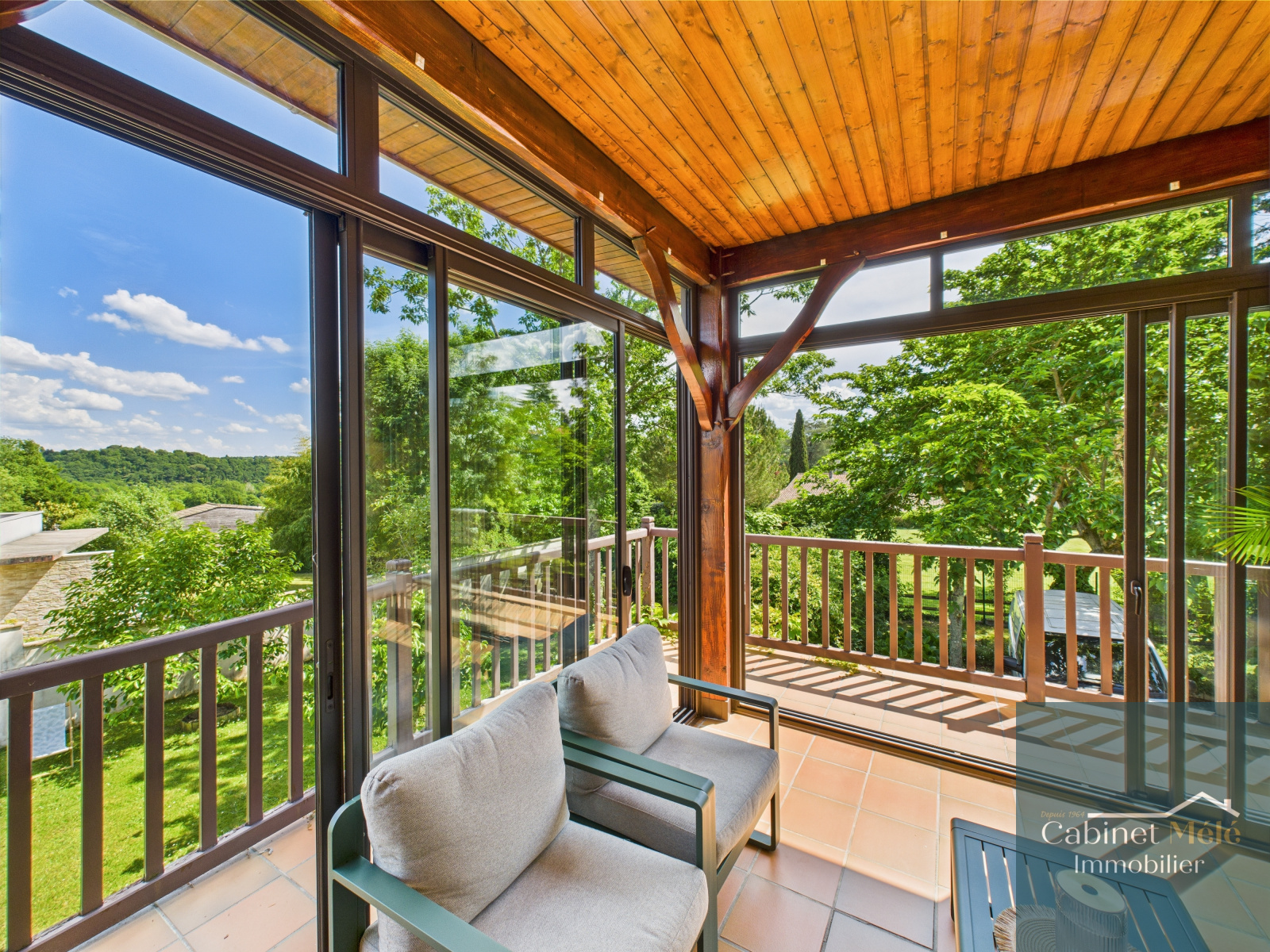 Bouliac (33270)Haut Bouliac au calme et toutes les commodités à pied, Le cabinet Mélé vous présente en exclusivité cette maison traditionnelle de 250 m2 habitable et son garage de 50m2 sur un terrain de 1465m2 arboré et clôturé. La maison comprend entrée, cuisine aménagée donnant sur véranda, séjour lumineux de 40 m2 avec cheminée, wc, la partie nuit se compose de 4 belles chambres avec placards, salle de bains, une salle d’eau, WC,. En rez de jardin on retrouve une cuisine, buanderie, deux autres chambres, bureau, salle de jeux avec accès jardin. Garage de 50m2 et une cave complètent ce bien. Possibilité de logement indépendant en rez de jardin.