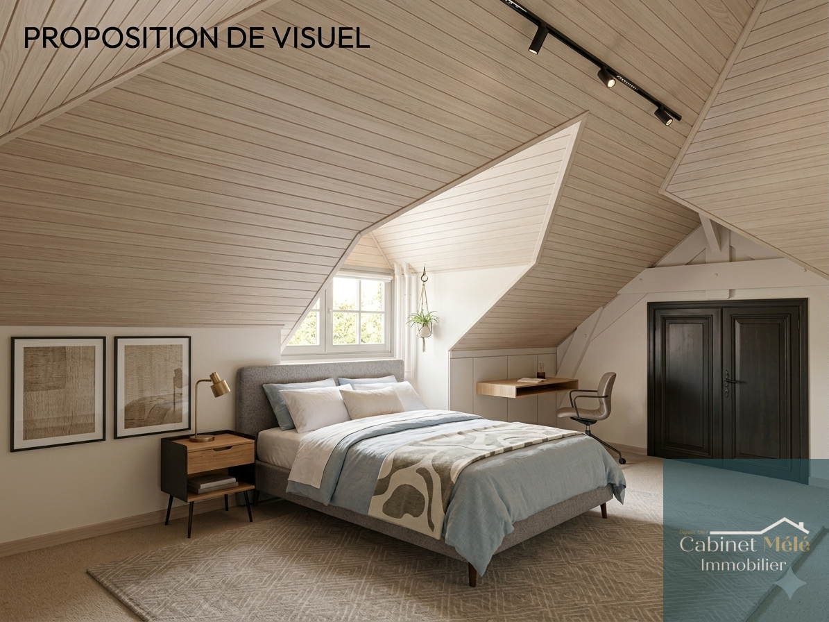 L’étage est un espace dédié à la détente et à la jeunesse. Il s'organise autour d'un grand salon servant de salle de jeux, distribuant deux très grandes chambres et une salle de bain avec toilettes. C’est l’endroit parfait pour offrir une indépendance totale aux enfants ou aux invités.