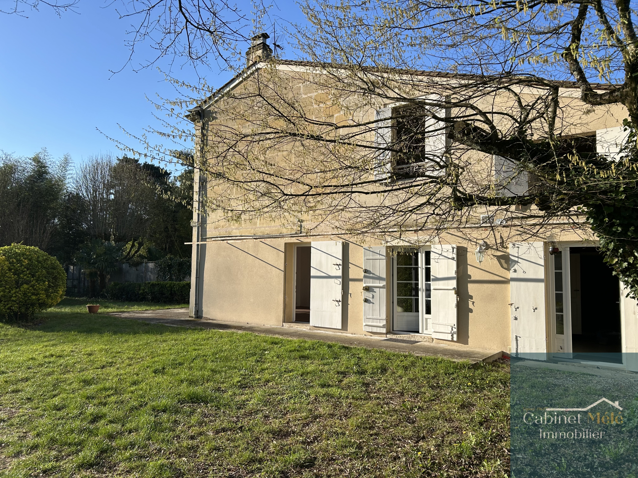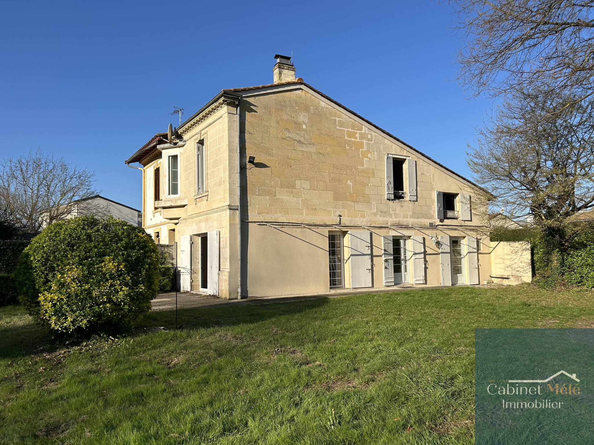 Artigues-près-Bordeaux (33370)Située dans un environnement agréable et à proximité immédiate des transports, cette charmante maison en pierre développe une surface de 107m2 habitable sur 2 niveaux. Elle se compose d'une cuisine équipée, d'un grand cellier avec wc, d'un séjour lumineux donnant sur la terrasse et le jardin. A l'étage on retrouve la partie nuit avec 3 chambres, 1 salle d'eau et un bureau. A l'extérieur vous serez séduits par un terrain de 500m2, offrant un bel espace de détente et de nombreuses possibilités d'aménagement.