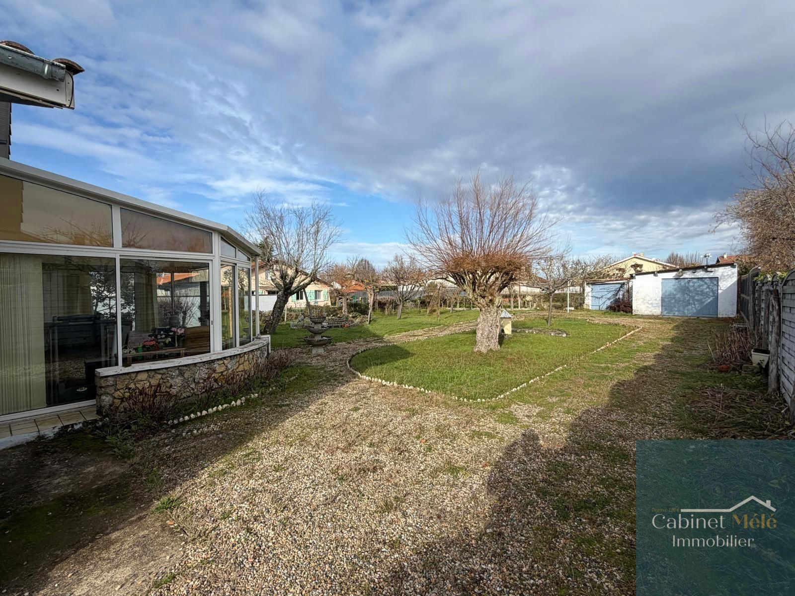 L’ensemble est implanté sur un terrain d’environ 1 100 m² avec garage et abri de jardin.