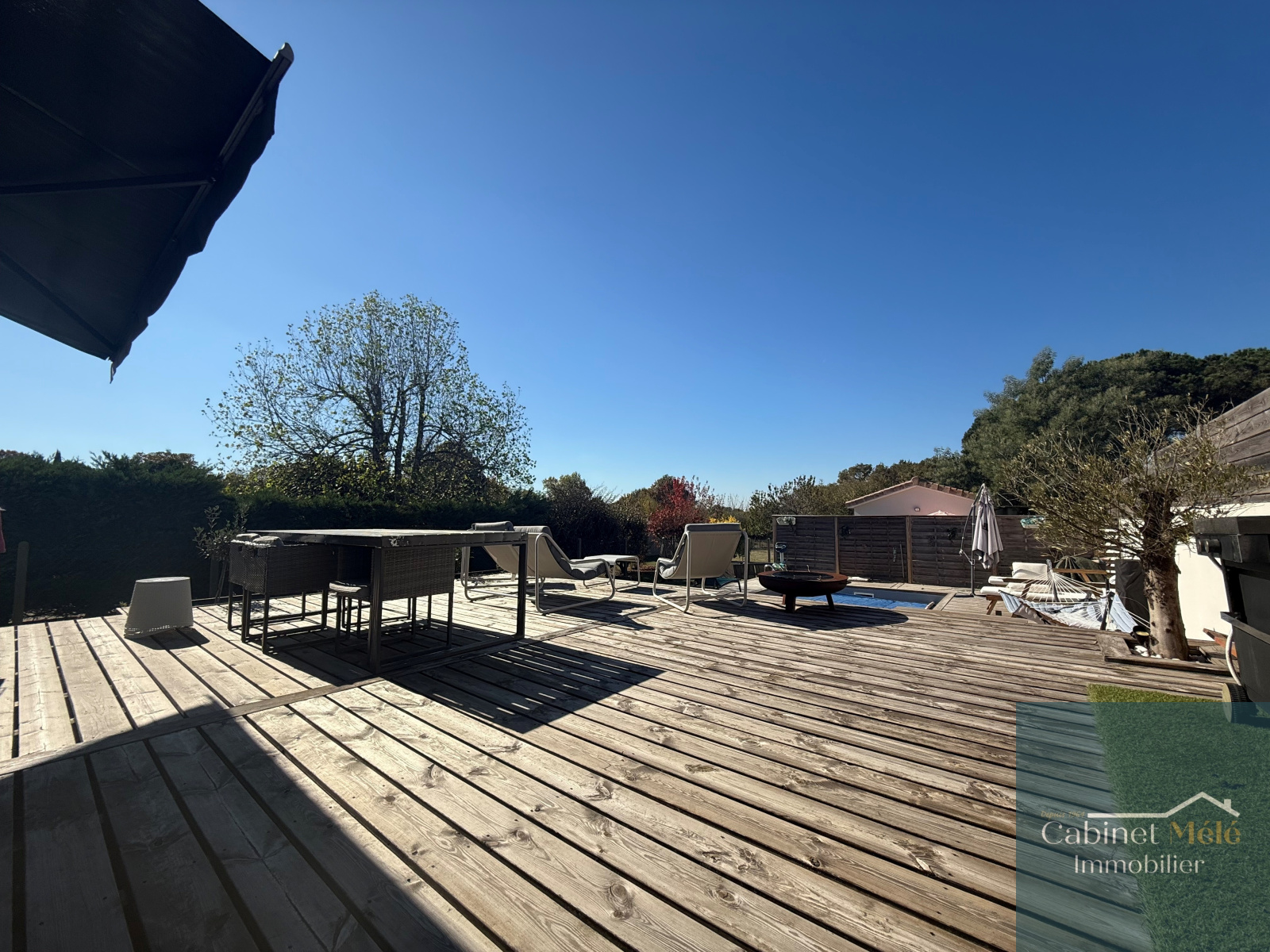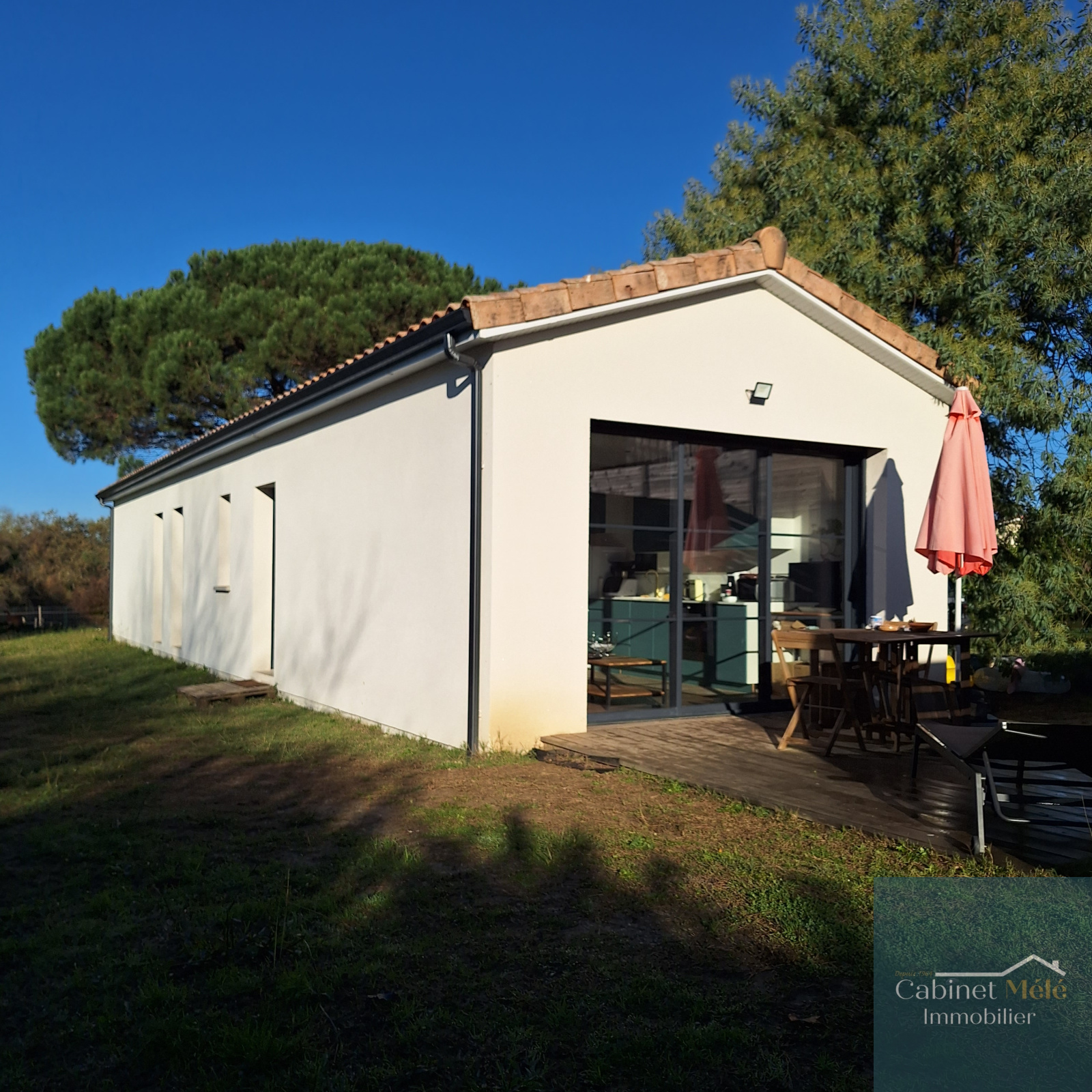 Créon (33670)Maison 2021 au confort moderne de 95 m² plus dépendance aménagée indépendante de 66 m² habitables. Le logement pnicipal comprend un séjour-cuisine ouverte équipée 23.5 m² donnant sur une piscine au sel 8x4, salon de 16m². Un cellier, trois chambres, SDE et WC, bureau de 7.26m². Le logement indépendant comprend séjour avec coin cuisine 26 m², trois chambres, SDE-WC.