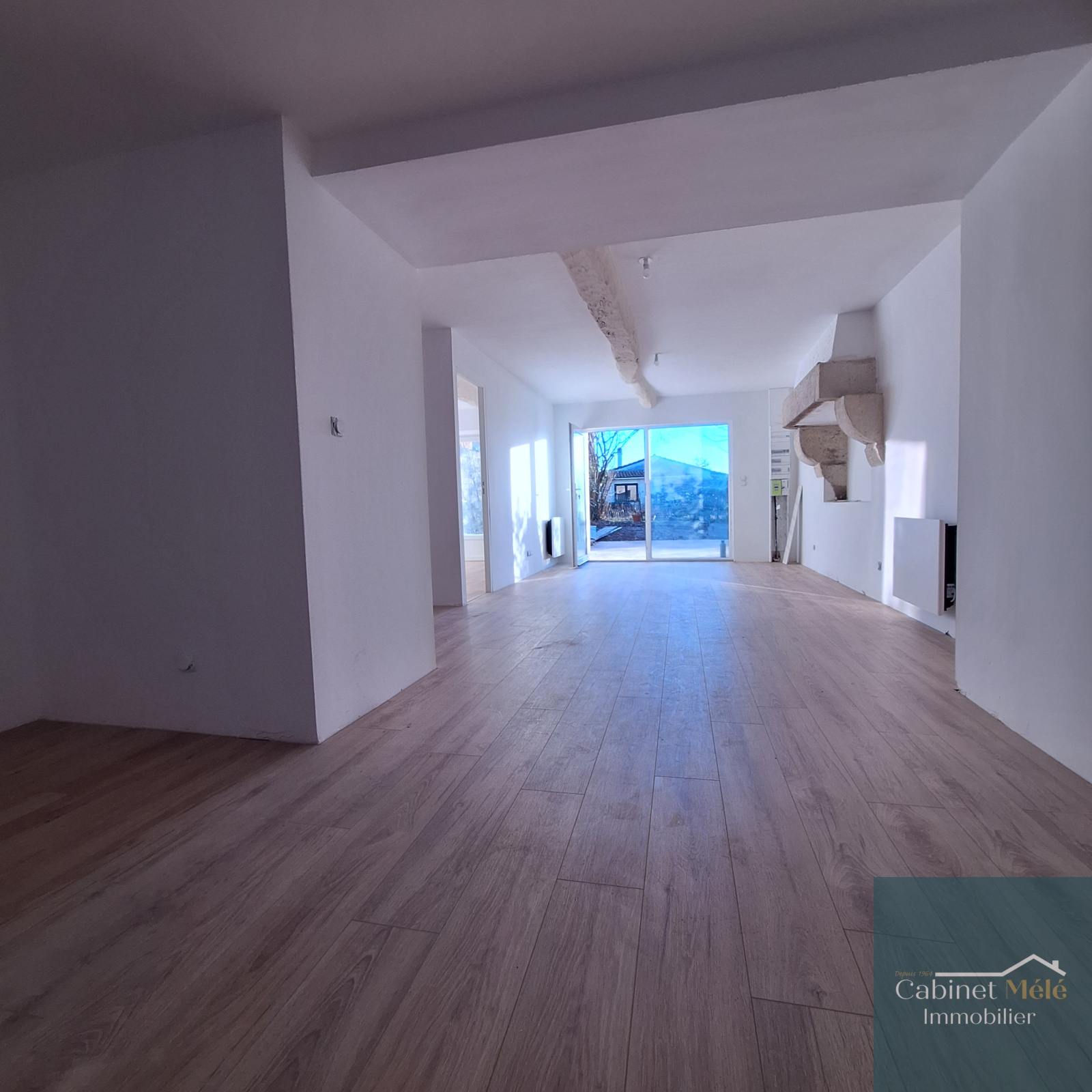 Créon (33670)Sur les coteaux plein sud, le cabinet Mélé vous propose un appartement rénové en pierre de plain-pied d'environ 57m² : séjour-cuisine ouverte 42m² donnant sur une terrasse de 35m² avec jardin privatif d'environ 150m², une chambre de 10m², WC et salle d'eau. Une place de parking et un local vélos complètent ce bien. (possibilité garage privatif)