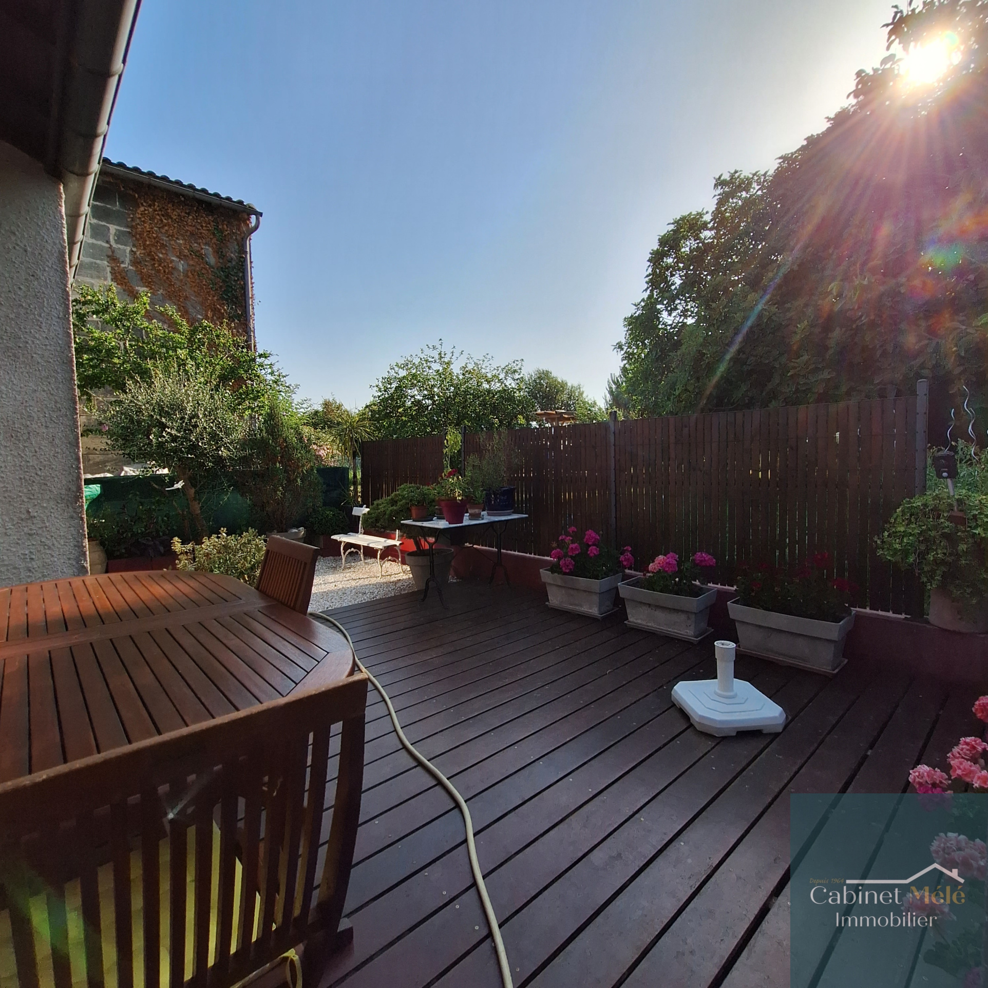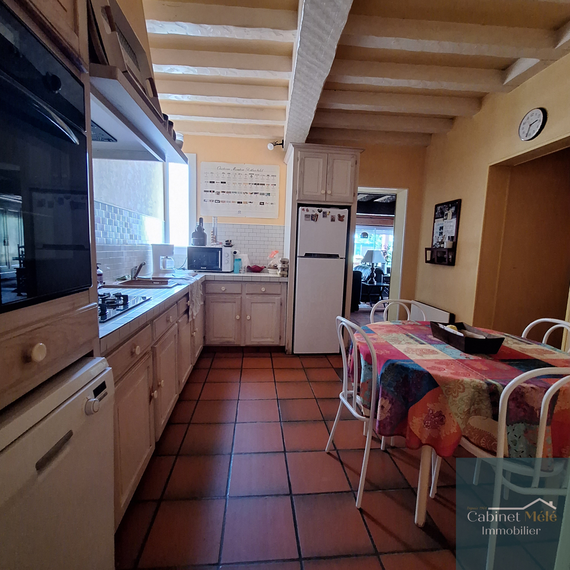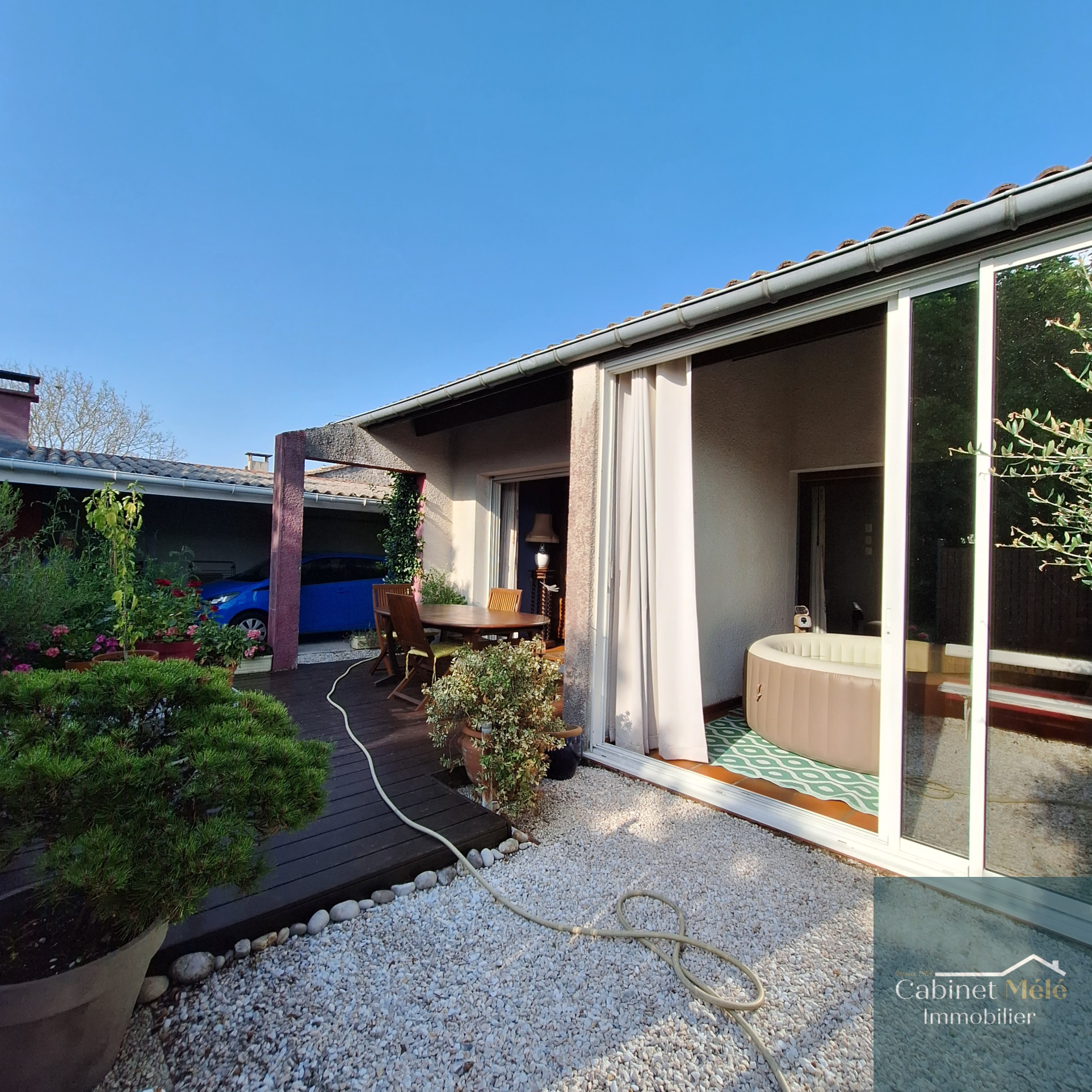Créon (33670)Située à 3km du centre de Créon, le cabinet Mélé vous présente cette maison de village d'environ 181m² comprenant au rez-de-chaussée un salon, une cuisine équipée, une buanderie, un séjour avec un plafond rampant donnant sur une véranda et une terrasse, WC. L'espace nuit, à l'étage, comprend une mezzanine, 3 chambres spacieuses, une salle d'eau, une salle de bains et un WC. Un garage attenant complète le bien.