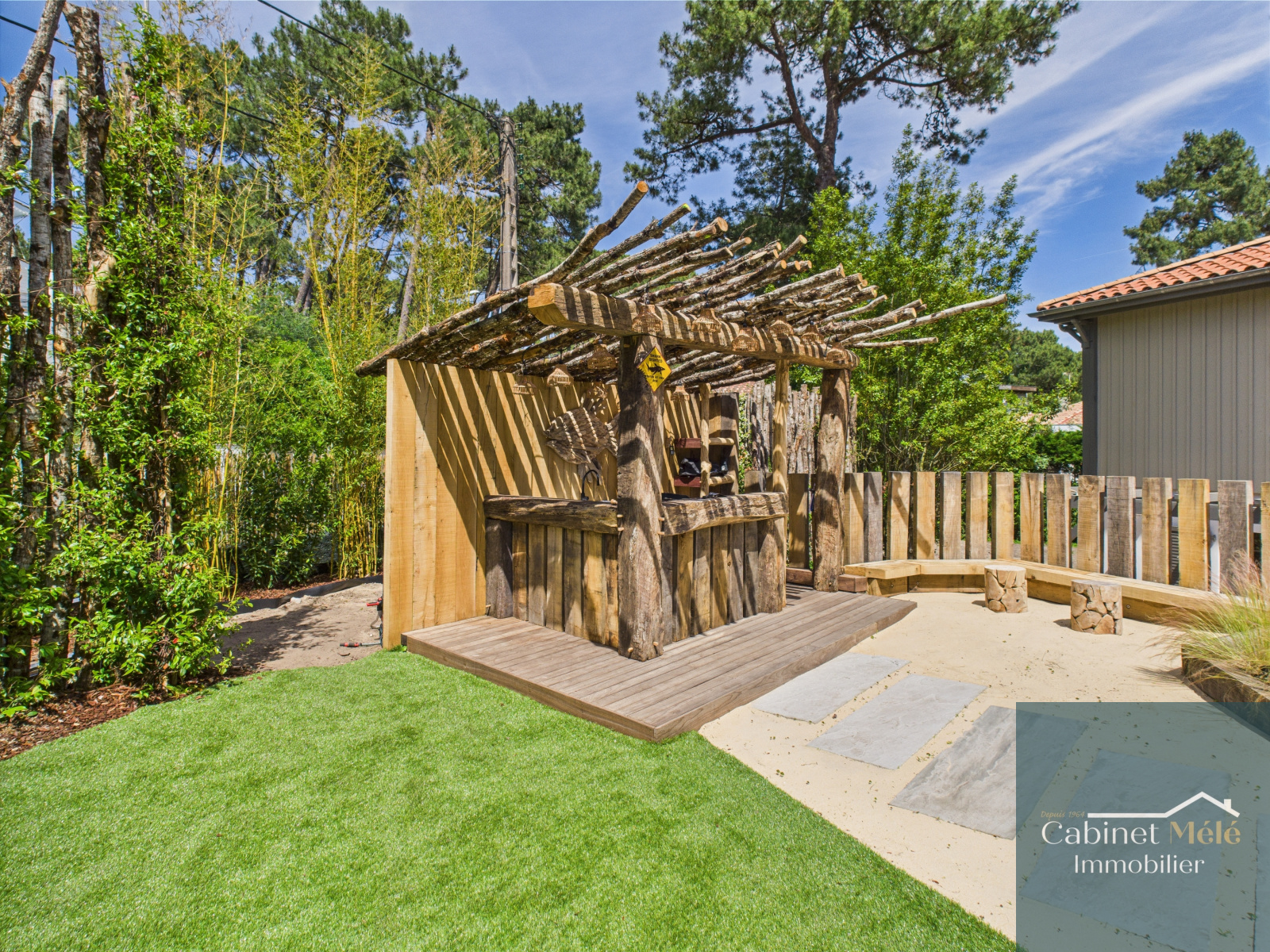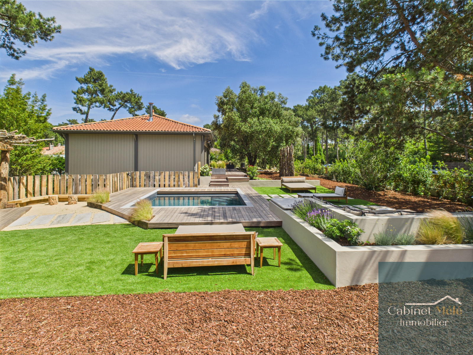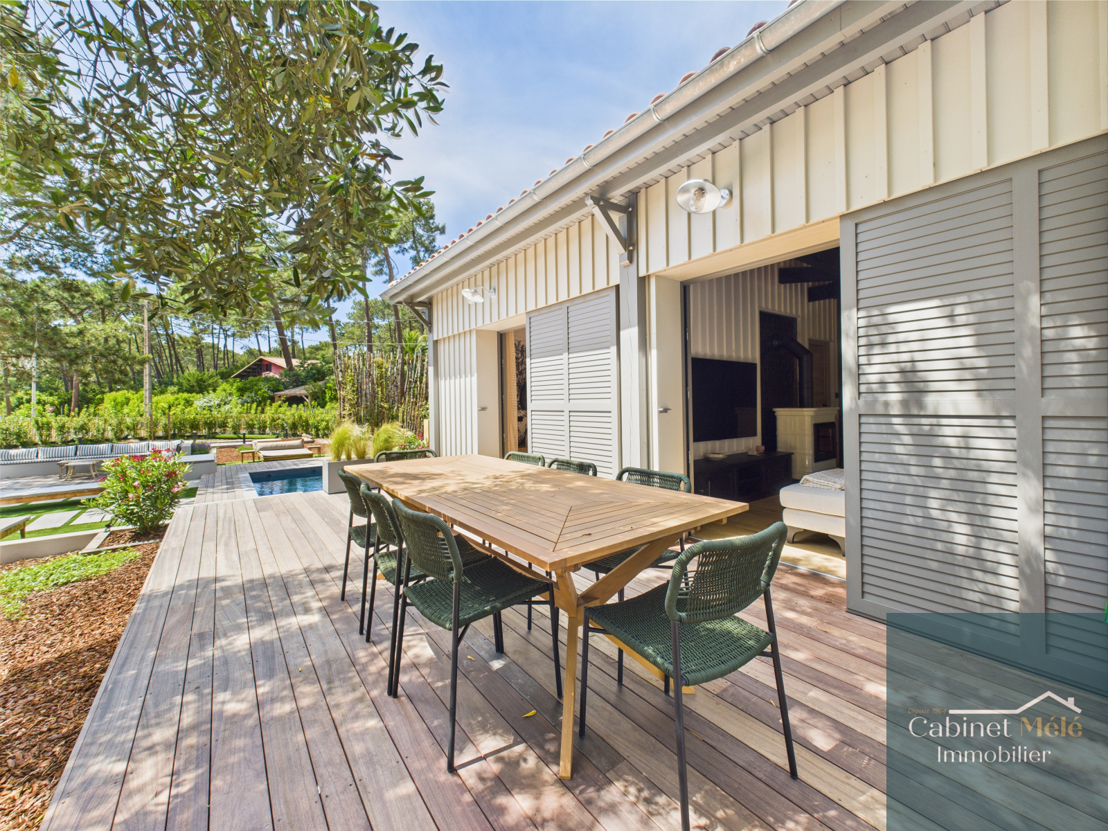 Lège-Cap-Ferret (33970)Dans l’un des recoins les plus prisés de la Presqu’île, cette maison entièrement rénovée, meublée et équipée, offre une parenthèse rare à 5 min à pied du Bassin, 1 km de l’océan et à 500 m des pistes cyclables. Baignée de lumière grâce à son exposition plein sud, elle allie élégance et confort : 6 chambres dont 3 suites, une master généreuse, 6 WC, 2 salles d’eau, un séjour traversant et deux terrasses pour vivre au rythme du soleil. Le jardin paysager abrite une piscine chauffée, une paillote, une banquette sous les pins, un terrain de pétanque… et ce parfum unique de jasmin, de sable chaud et de vacances. Prête à vivre. Prête à aimer. Un bien précieux, à mille lieues de l’ordinaire.